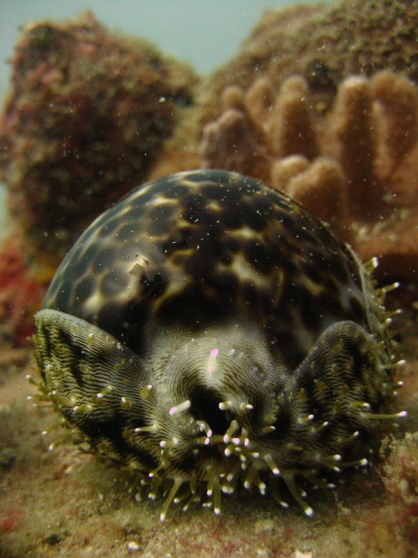 虎斑宝贝(学名:Cypraea tigris),又名黑星宝螺,俗名虎皮贝,是中腹足目宝螺科的一种。卵圆形的壳,长约 11 厘米;背部膨圆,前段稍尖瘦,后端向内凹陷。贝壳表面光滑如瓷器,有由外套膜分泌的珐琅质,有白色或淡黄色的光泽,具有大大小小的黑褐色斑点,色彩如虎皮,因此得名。壳稍厚,壳口窄长,两侧边缘向内陷入,有齿状突起。壳内面,基部中凹,呈乳白色。主要分布于西太平洋及印度洋区,常栖息在浅海珊瑚礁、岩石底、低潮线以下。虎斑宝贝拥有光泽的外壳和美丽的图案,具有较高的观赏和收藏价值,受到广大收藏者及水族观光者的青睐,是珍贵的观赏性贝类。此外,贝壳可供药用,与其他中药配伍,可治高血压、惊悸失眠、血虚、小儿斑疹等症。除供观赏外,肉可食,还可作为贝雕工艺的材料。